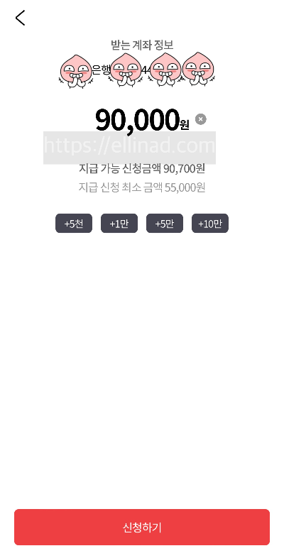 90,000원을 신청했더니 제세공과금 22%를 제외하고 70,200원이 입금예정이라고 나온다.