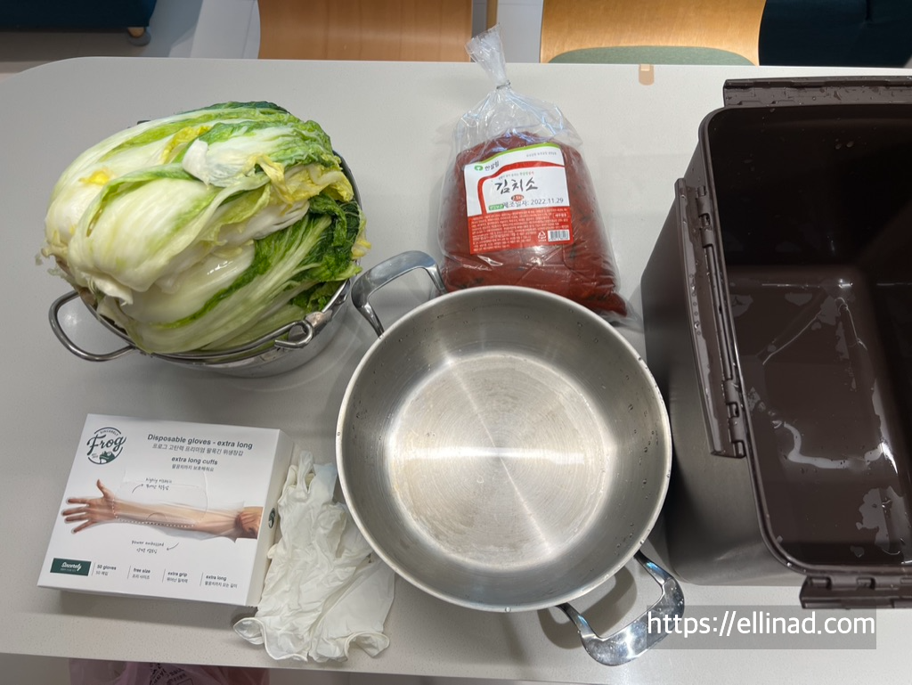 오랫동안 2인가족이었기 때문에 큰 그릇이 전~혀 없다. 큰 다라도 없다. 큰 김장 비닐을 펼쳐둘 곳도 없다. 그래서 김치통에 배추를 절이기로 했다. 우리집은 김치냉장고 1대로 냉장, 냉동, 김치냉장을 다 사용하고 있어서 김치통이 남아나기 때문이다. 작은 김치통들은 당근에 팔아버리고(김장철 되니 잘 팔리더라) 어머님 김장이 어떨지 몰라서 큰 김치통만 남겨두었다.