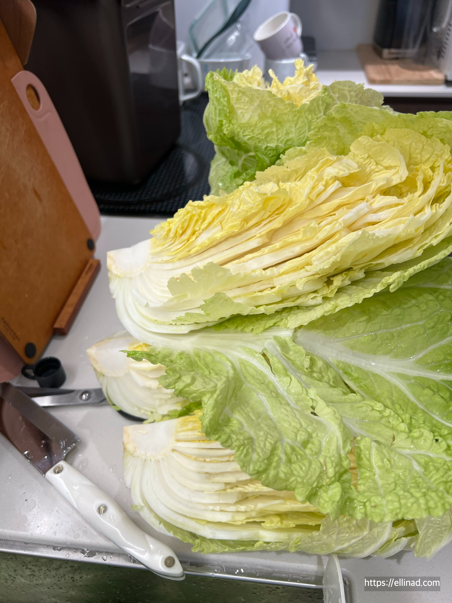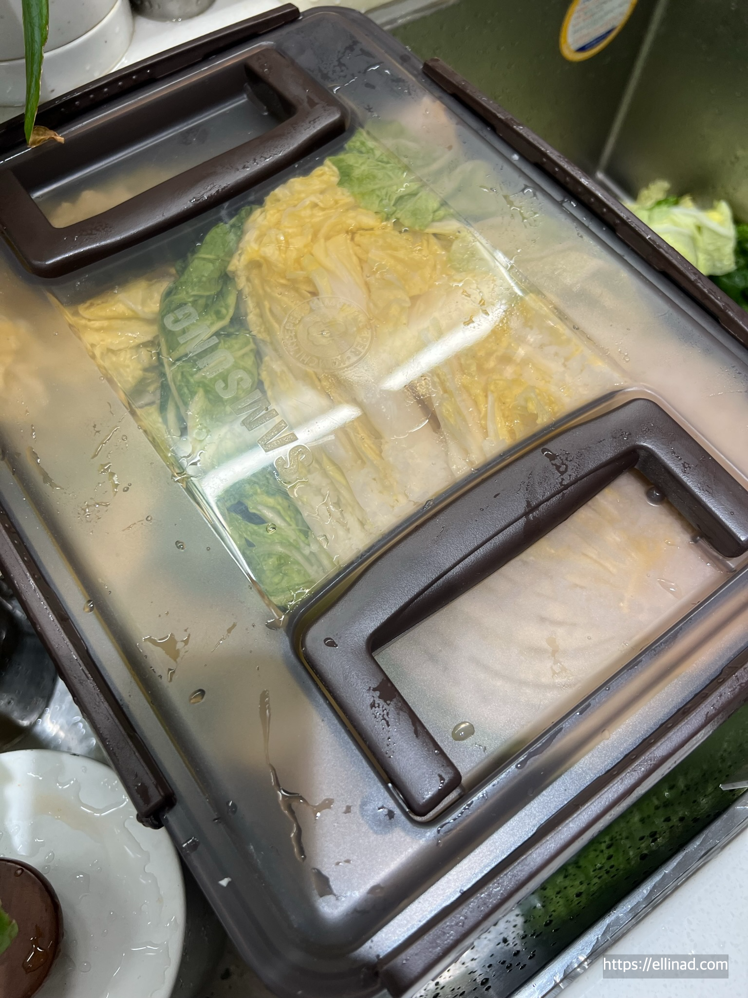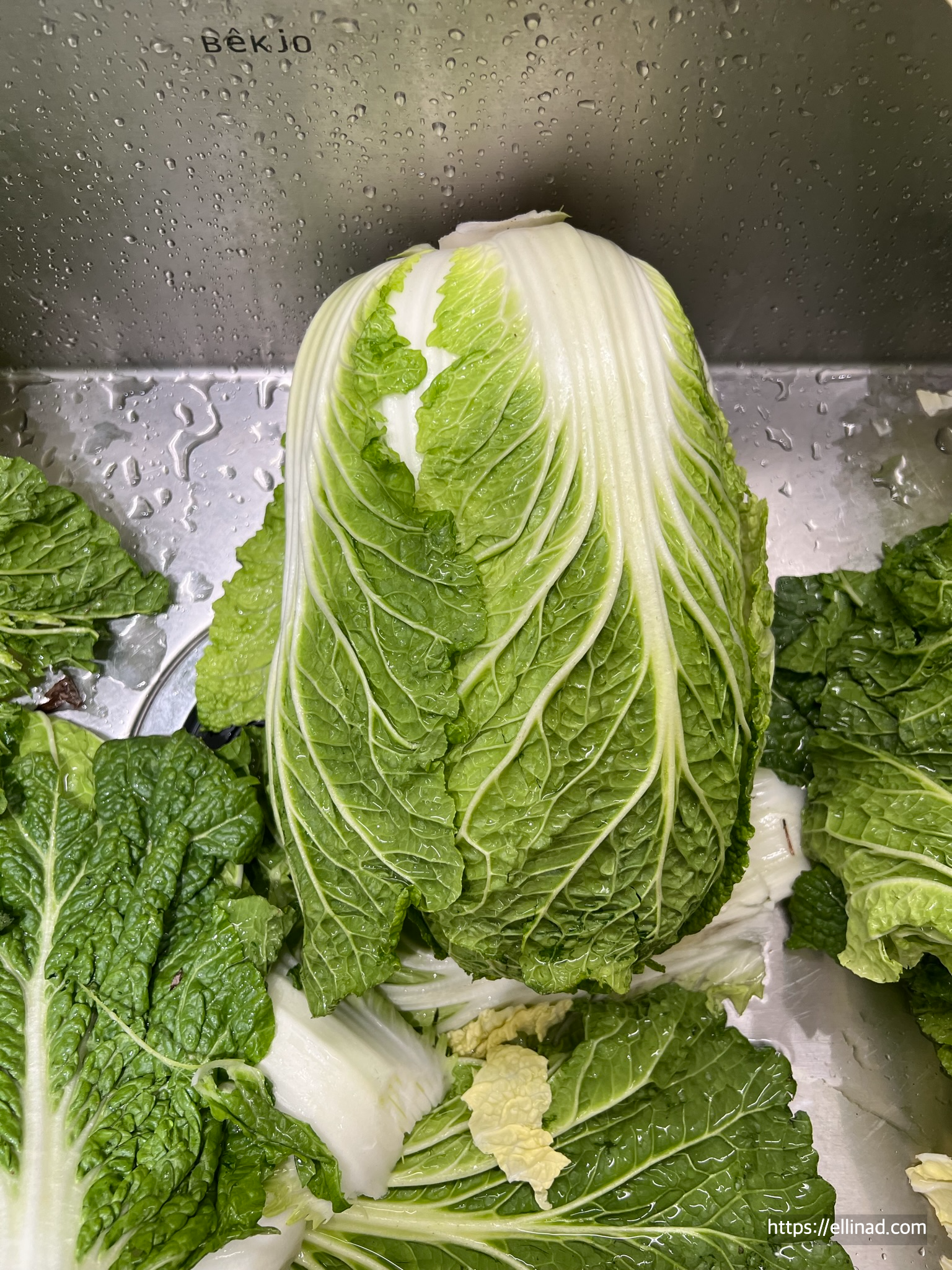 나중에 찾아보니 배추를 안씻어도 된다고 했지만, 나는 부엌 싱크대에서 하기 때문에 배추를 씻었다. 흙이 여기저기 흩어지는게 싫으니까.