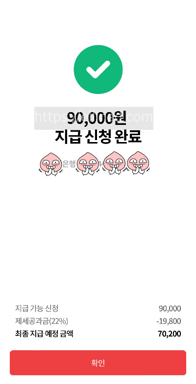 90,000원을 신청했더니 제세공과금 22%를 제외하고 70,200원이 입금예정이라고 나온다.