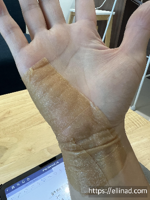 손은 금방 나은것 같아서 드레싱밴드를 교체안하고 그냥 붙여두었더니 나중에 접착성분이 남아서 씻기가 매우 불편했다.