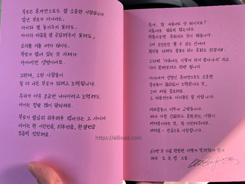 중간중간에 나오는 육아이야기에 진짜 금쪽같은 이야기들이 많아서 옮겨 적다 보니 양이 너무 많아졌다.