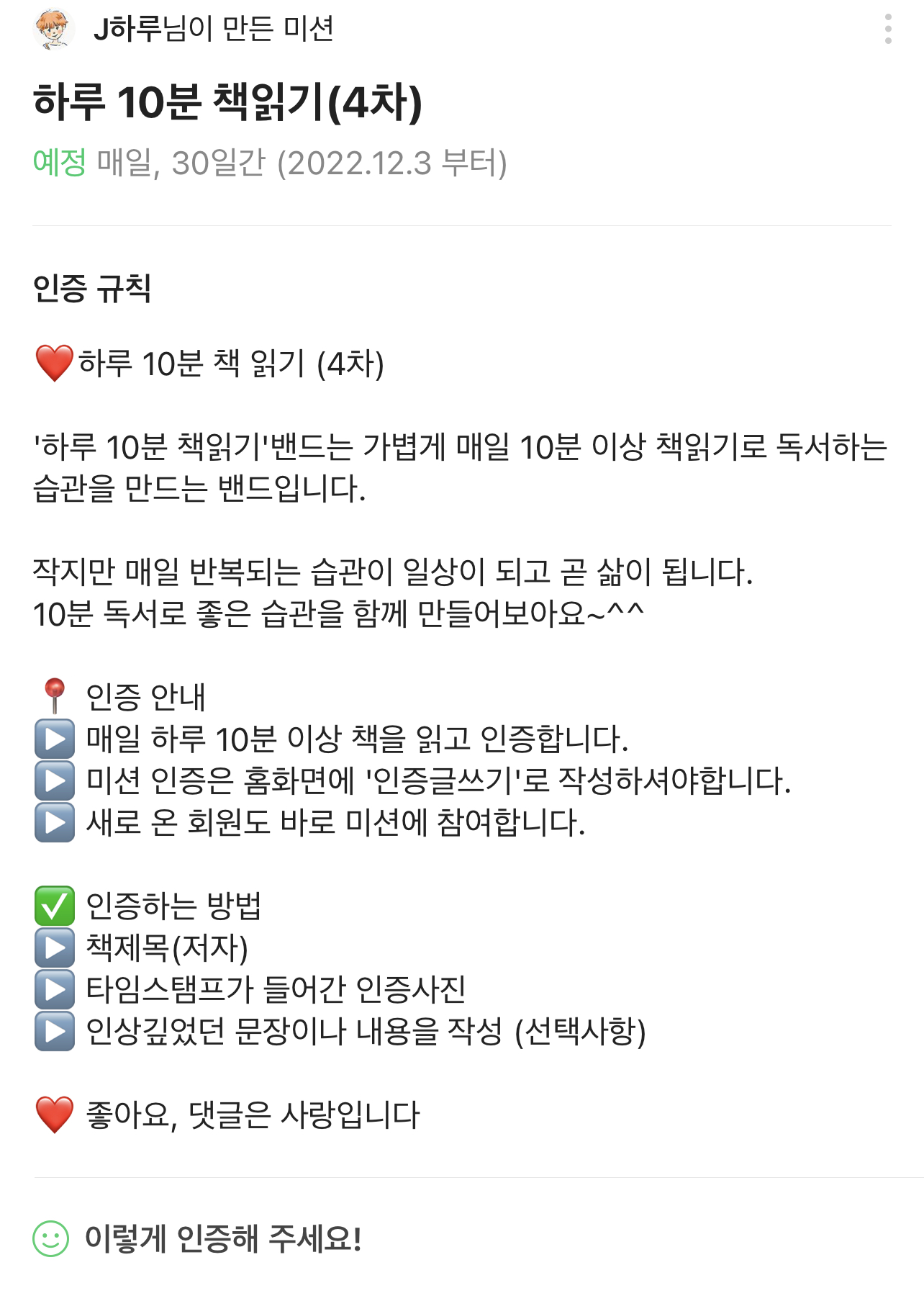 내일부터 시작하는 "하루 10분 책읽기(4차)" 미션 모임에 가입해보자!